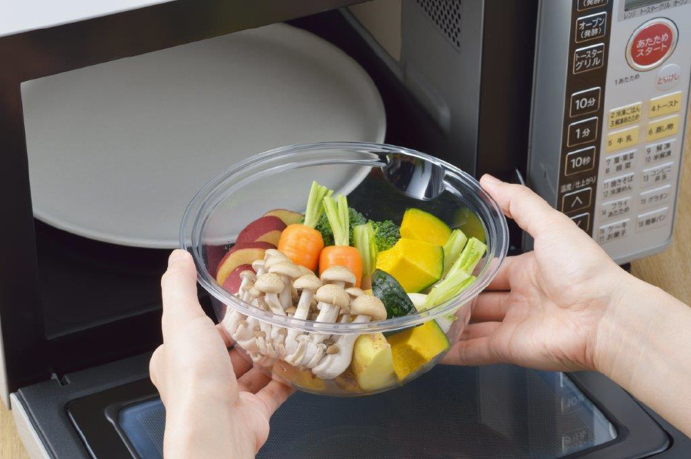 透明度が高く、中身が見える電子レンジ対応ボウルです。