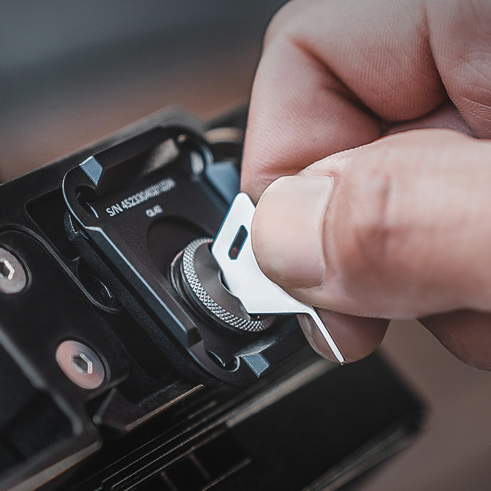 標準装備の多機能イジェクトピンは、メモリーカードを簡単に取り外すことができ、その特徴的な形状は、クイックリリースプレート用の簡易的なマイナスドライバーとしても機能します。