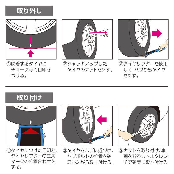 ※本製品は、車両からタイヤを脱着する際、作業をスムーズにする為の工具です。