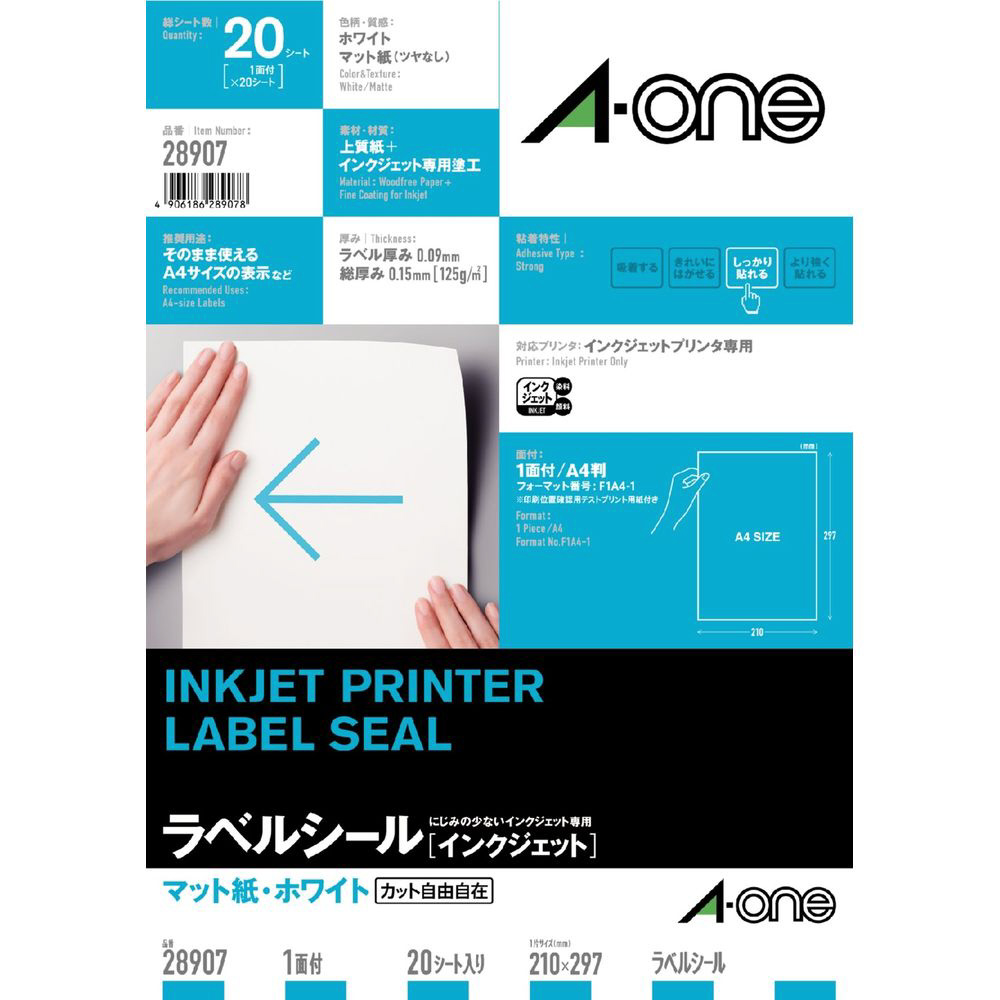インクジェットプリンタラベル ホワイト 28907 [A4 /20シート /1面 /マット]