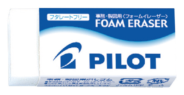 特殊発泡体(FOAM)の採用により、従来の消しゴムの「軽く消せる」と「消しクズがまとまる」という相反する性能を両立させました。フタル酸エステル系可塑剤を使用しない「フタレートフリー」消しゴムです。