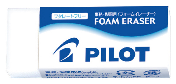 特殊発泡体(FOAM)の採用により、従来の消しゴムの「軽く消せる」と「消しクズがまとまる」という相反する性能を両立させました。フタル酸エステル系可塑剤を使用しない「フタレートフリー」消しゴムです。