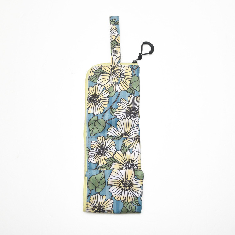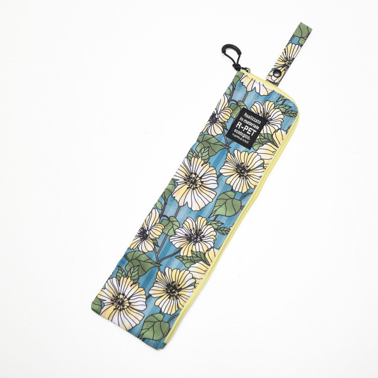 『SoBoVi』という名前は「Sollazzare 楽しむ」「Borsa 鞄」「Viaggiatore 旅人」から付けられました。 『Ambience』とは植物や民族衣装、建物のディティールや現地で見かけた雑貨、インテリア。旅先で飛び込んでくる様々なモチーフをテキスタイルに落とし込み、日常の様々なシーンがワクワクするような雑貨のシリーズ。本体や内装の生地にペットボトルのリサイクル生地を使用しています。