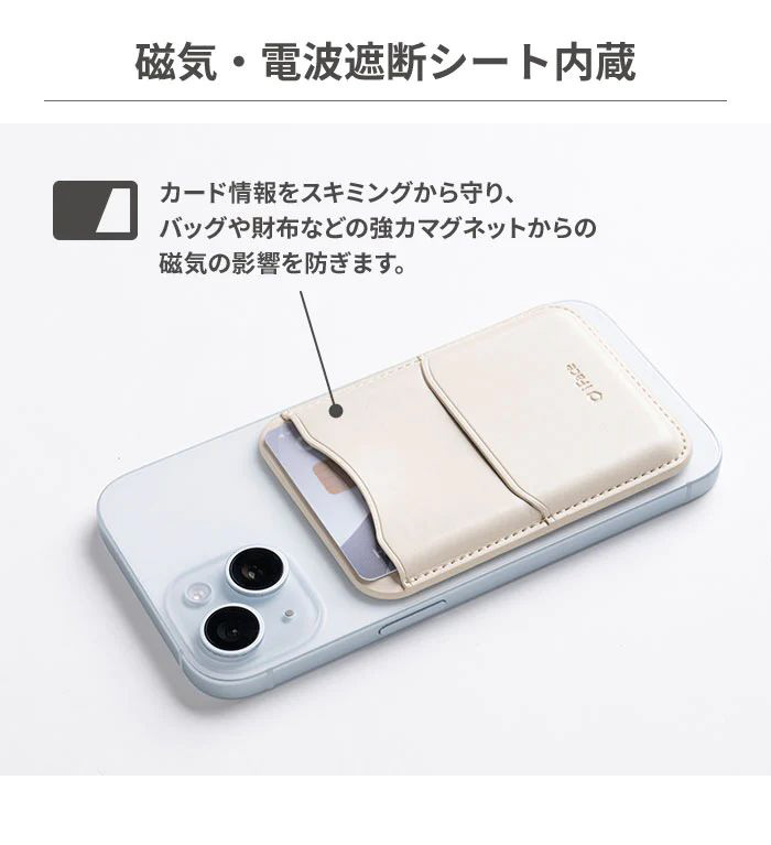 MagSafe対応ケースの背面にピタッとくっつき、カード収納可能になるので、