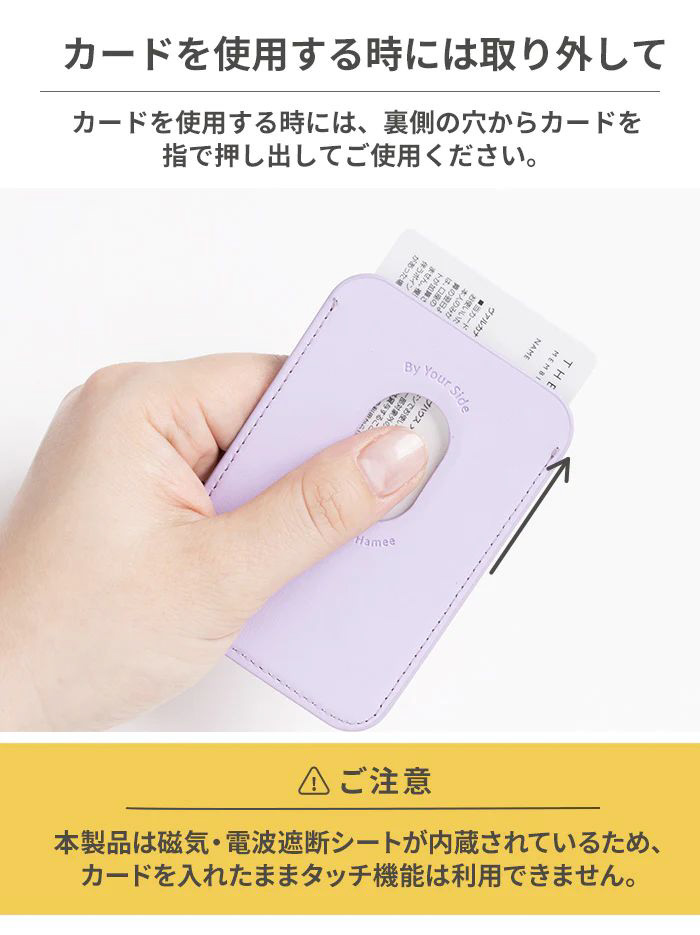 MagSafe対応ケースの背面にピタッとくっつき、カード収納可能になるので、ミニマムに外出したい方にピッタリ。