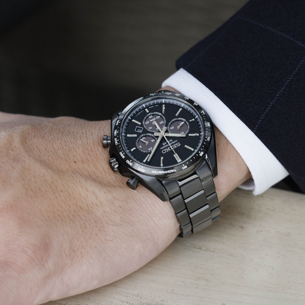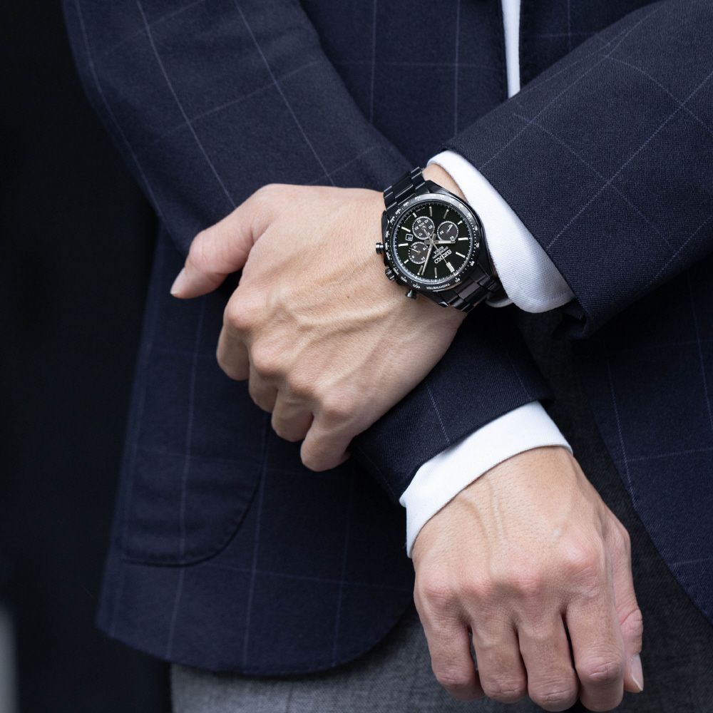 ■ 広めのダイヤルに、夜間でも時刻が分かりやすいルミブライトつきの、視認性に優れたソーラー クロノグラフモデル。ケースの側面やかん足部分に段差や面を付けた事で、傾けたときにキラリと光り上質感を演出。