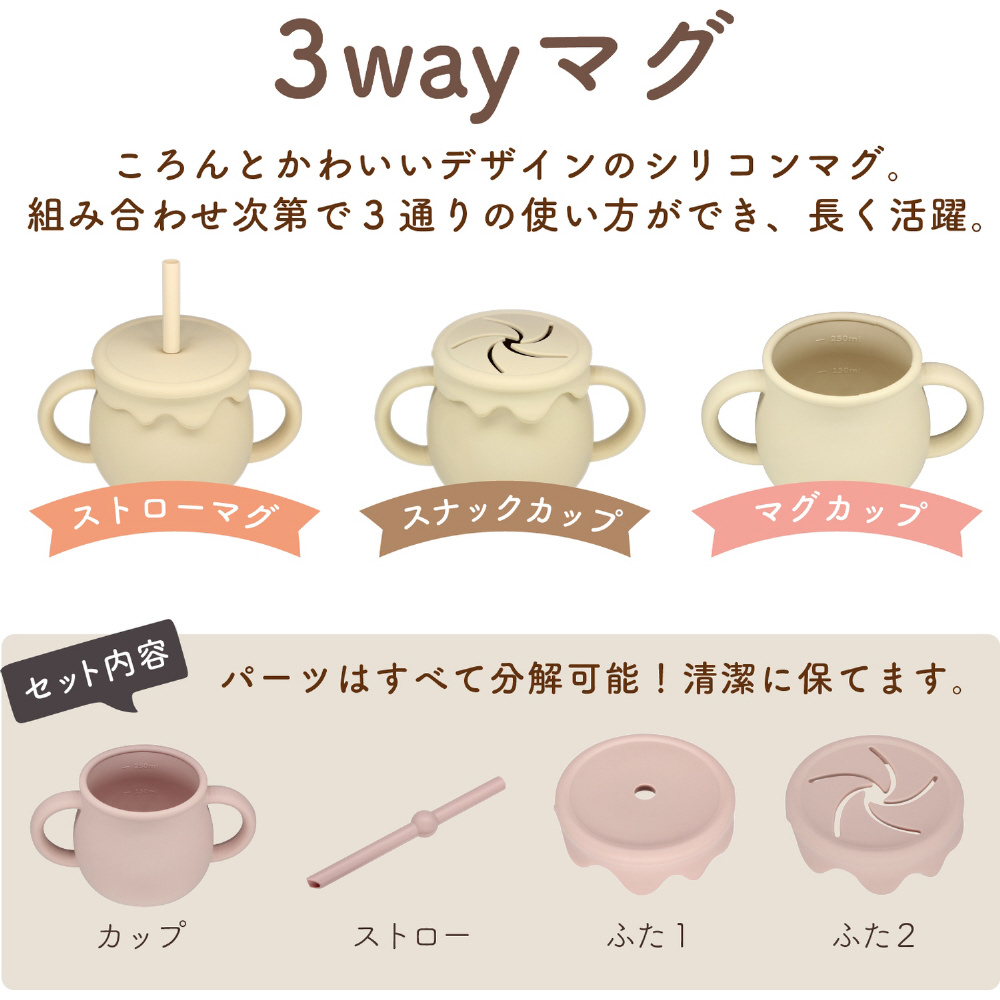 ストローマグ、スナックカップ、マグカップの3wayでマルチに活躍。