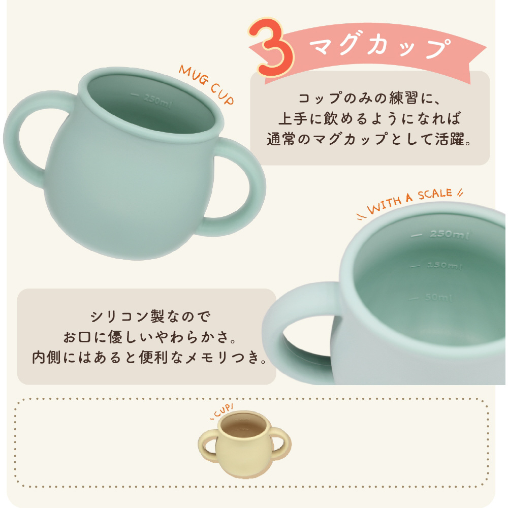 コップ飲みの練習に、上手に飲めるようになってからは通常のマグカップとして使えます。