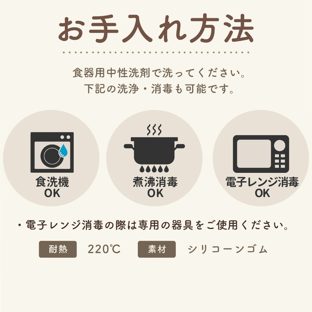 お出かけ先や乗り物での移動中にもこぼれにくく、シリコン素材なので落としても割れる心配がありません。