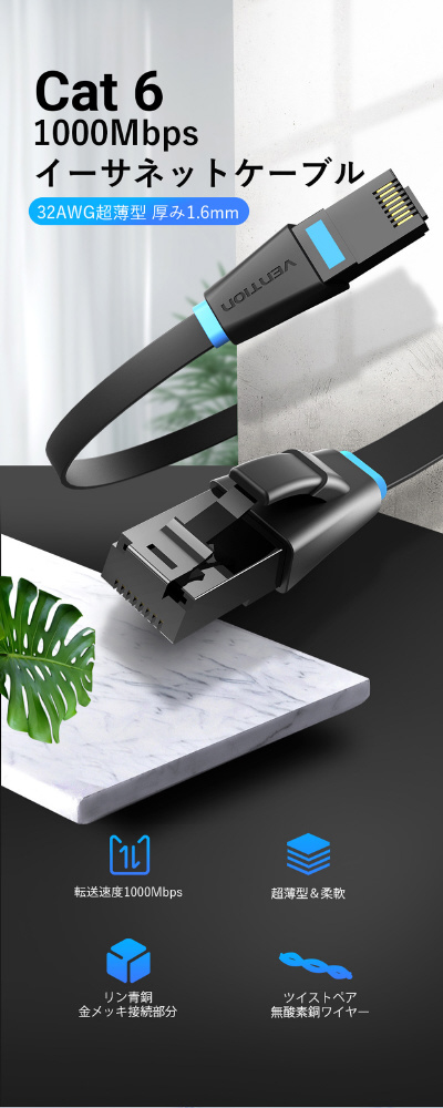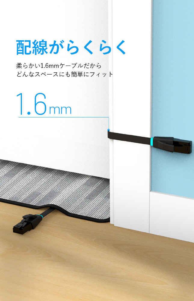 ■薄さ1.6mmケーブルだからどんなスペースにも簡単にフィットし配線がらくらくです。