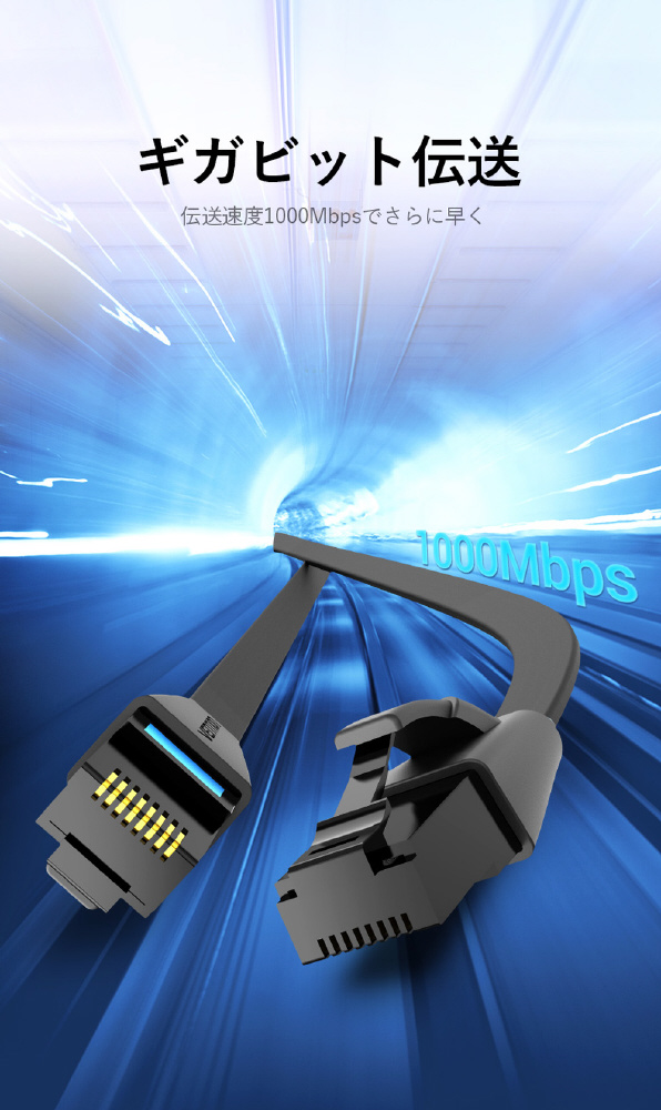 伝送速度1000Mbps(1Gbps)、伝送帯域250MHzを実現した、ギガビット完全対応LANケーブルです。