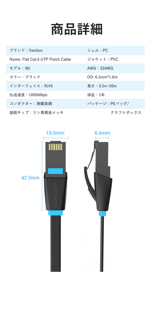 「IBJ Cat.6 UTP 薄型LANケーブル Black」