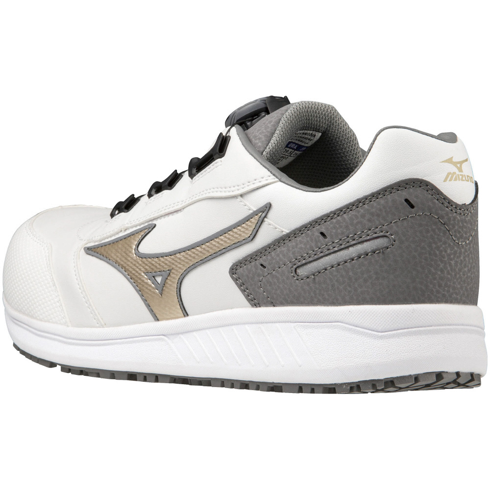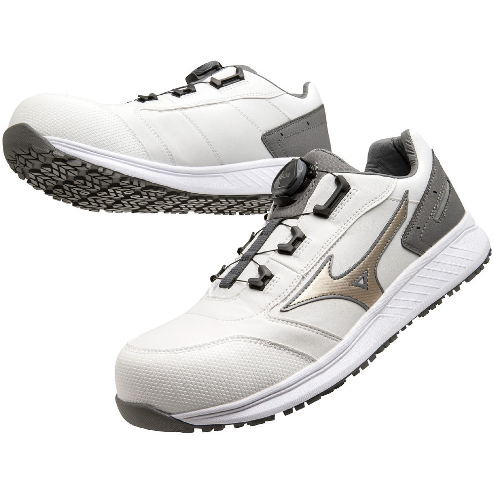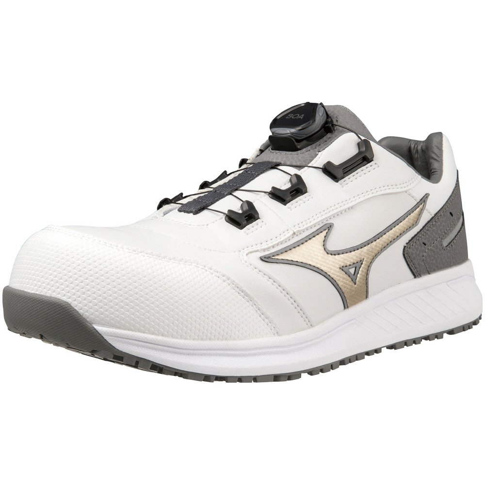 人工皮革による心強い防塵性能と「つまずき」に配慮したトウアップ設計のシューズに、BOA搭載でフィット感をプラス。