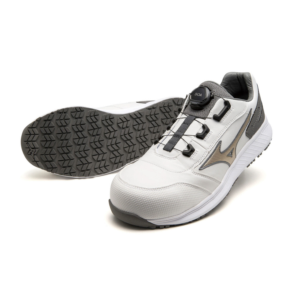 人工皮革による心強い防塵性能と「つまずき」に配慮したトウアップ設計のシューズに、BOA搭載でフィット感をプラス。