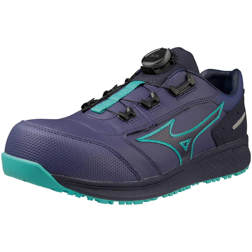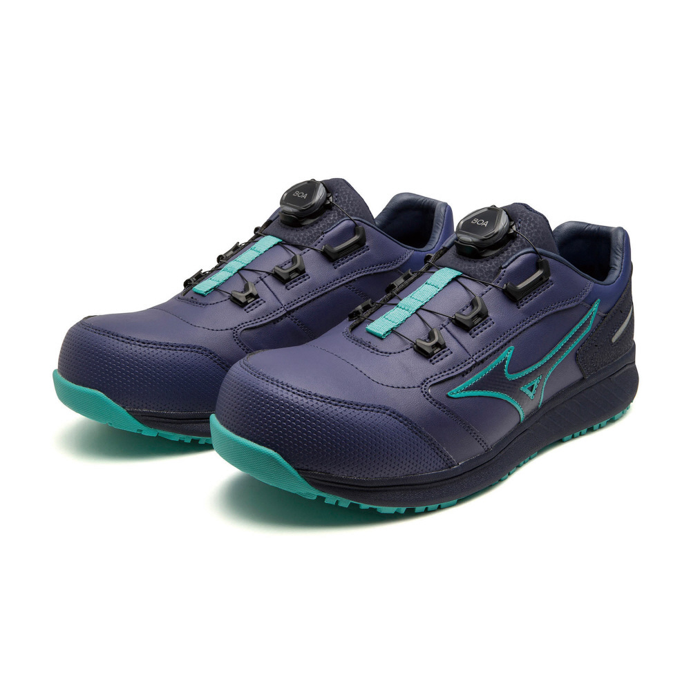 人工皮革による心強い防塵性能と「つまずき」に配慮したトウアップ設計のシューズに、BOA搭載でフィット感をプラス。