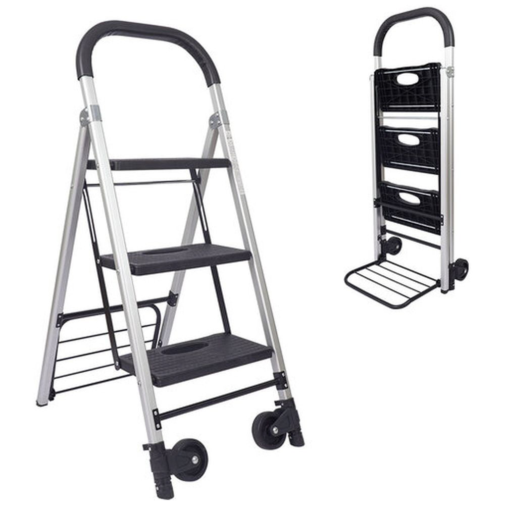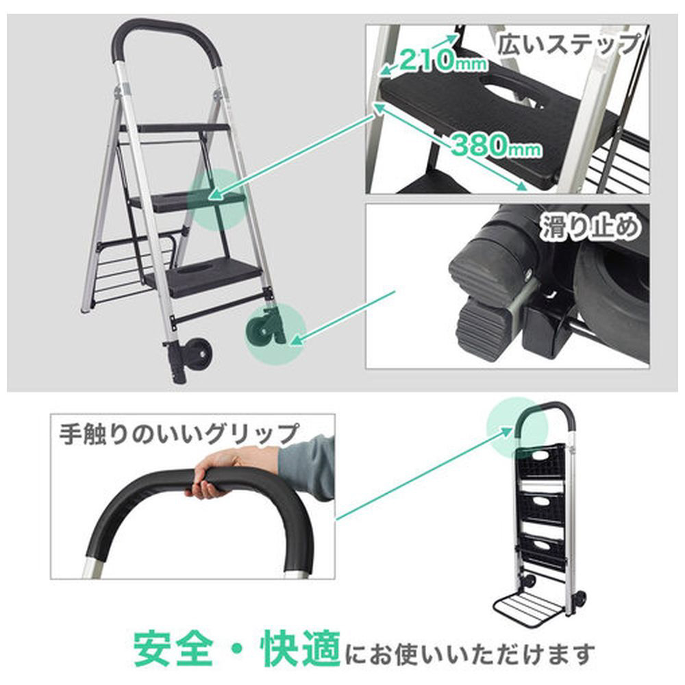 折りたたみの脚立・踏み台がカートとしても使える、場所を取らないアルミ製軽量脚立。