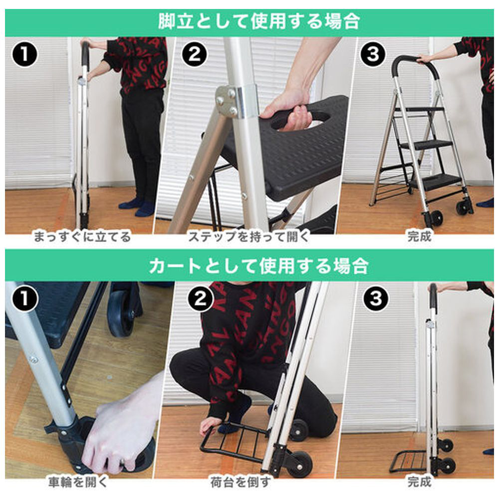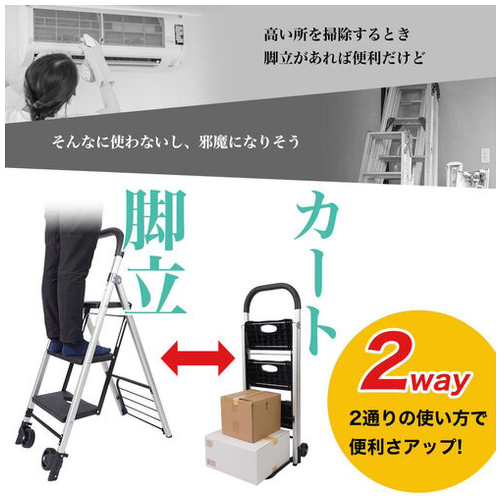 【脚立・踏み台でもカートとしても使える2way】
