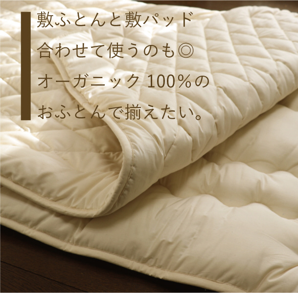 オーガニックコットン100%の安心なお布団を!
