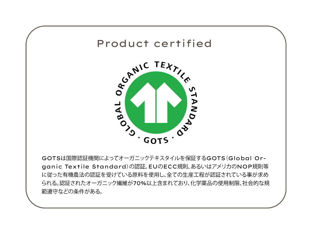 GOTS認証取得!側生地・中綿ともにオーガニックコットン100%