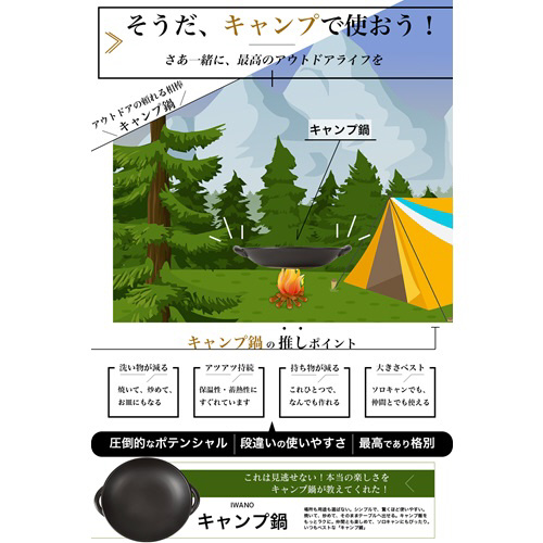 ユニバーサル物産 IWANO(イワノ) キャンプ鍋(グリルパン・グリドルパン) ブラック AWKTY