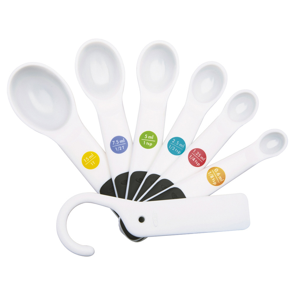 6種類のスプーンとフック兼スクレーパーのメジャースプーンセットです。
