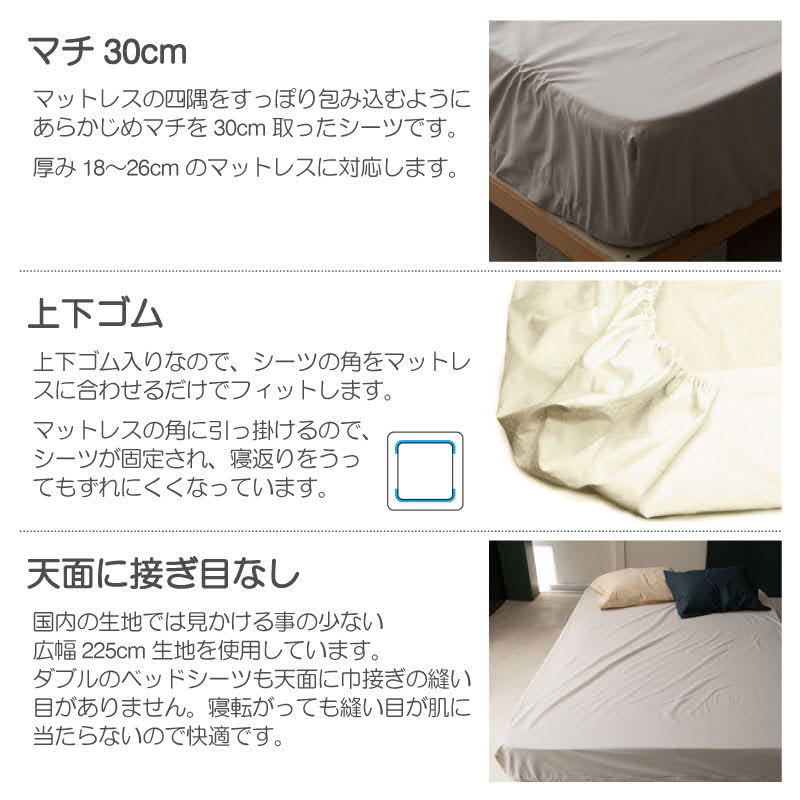 【ボックスシーツ】 ソリッド 100×200×30cm ホワイト FH131811-100 [シングルサイズ]