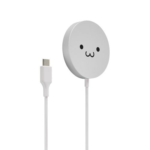 マグネットでQi2対応スマートフォンに固定するだけで高速充電できる、Qi2規格対応のワイヤレス充電器です。マグネットで背面にぴったりくっつくため、ワイヤレス充電中のスマホ操作も楽にできます。最大出力は15Wです。かわいいしろちゃんモデルです。