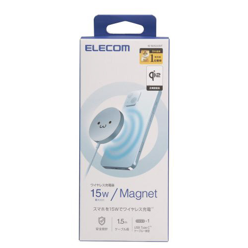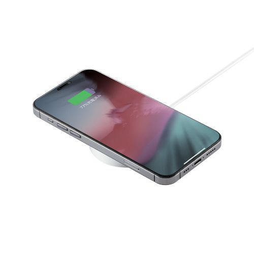 ワイヤレス充電器 Qi 認証 Qi2 対応 15W / 7.5W / 5W マグネット式 卓上 ケーブル一体 1.5m 置くだけ充電器 ホワイトフェイス W-MA04WF