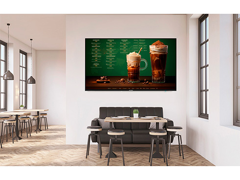 大画面液晶は大きな会議室での使用はもちろん、サイネージ用途や、映画などの鑑賞等様々な用途にお使いいただけます。