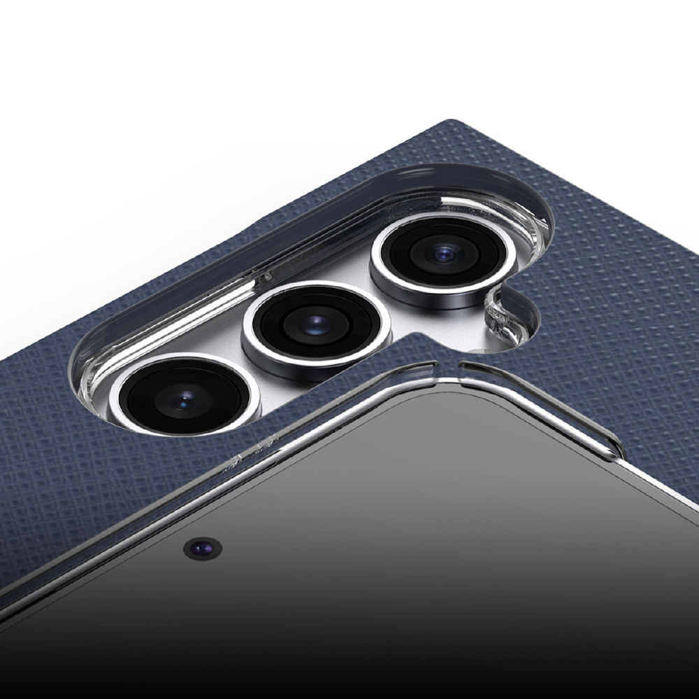 フリップカバーを閉じれば、前面と背面のケースがピッタリと密着し、デバイスを包みこむように360度全方位保護します。エッジに内蔵されたマグネットがフリップカバーをしっかり固定します。