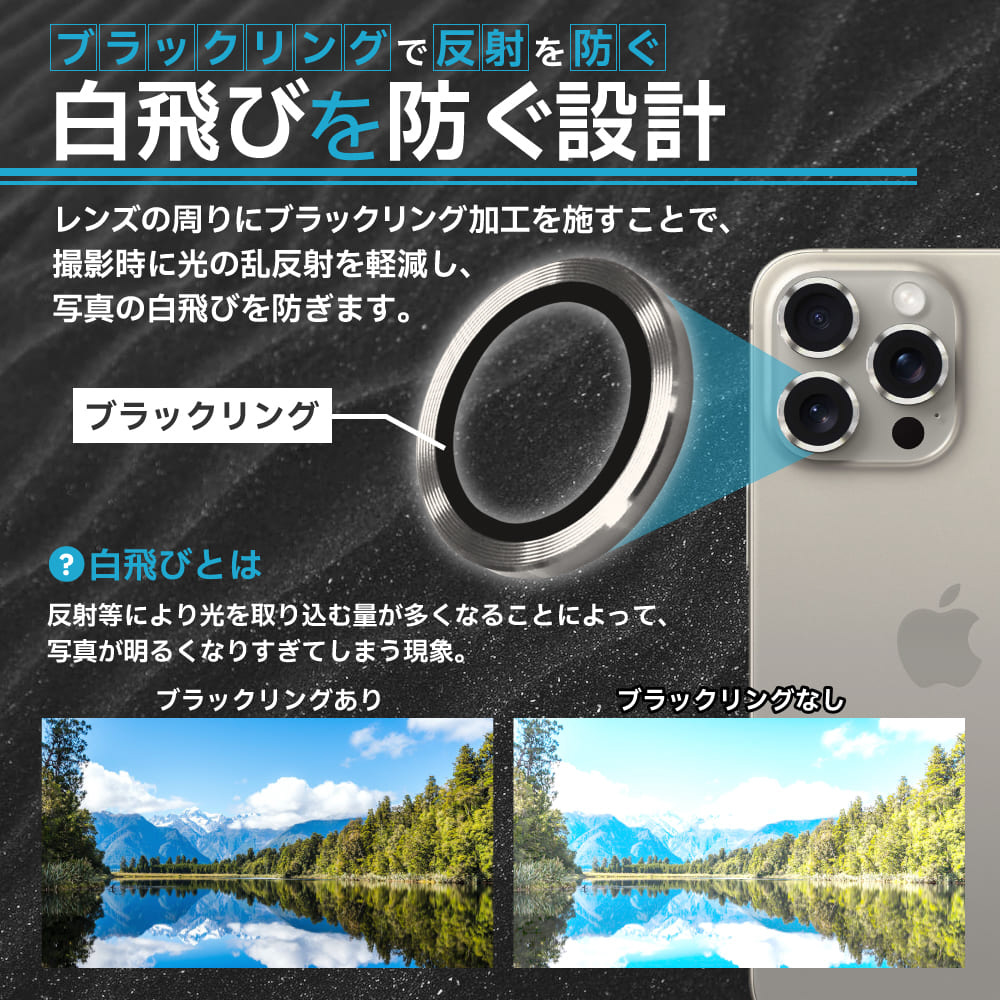 高透明ガラスを使用しているため、画質に影響出ることなく撮影可能!またブラックリング加工も施しているので、反射を軽減し、白飛びを防ぎます。
