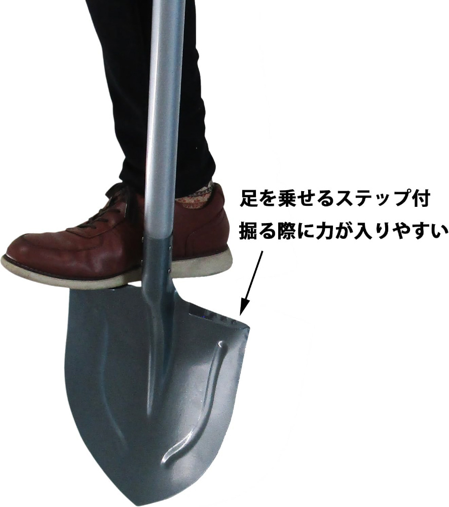 しっかりと足で踏み込める幅広ステップで掘る作業も楽にこなせます