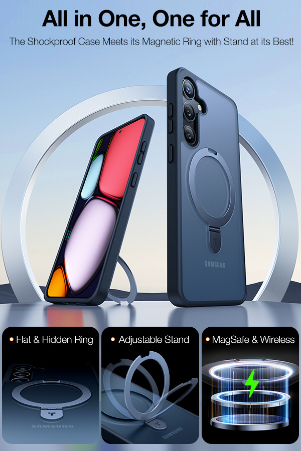 TORRAS UPRO Ostandケースは、磁気リングによる高速ワイヤレス充電と縦/横のスタンド機能、米軍規格に準拠する高い保護性能を提供します。