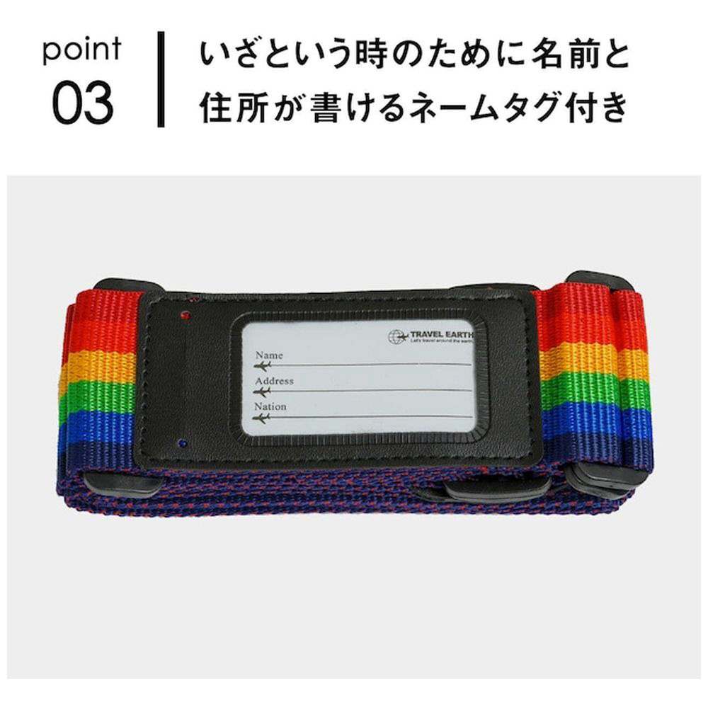 トラベルアース スーツケースベルト レインボー TE-304-RB