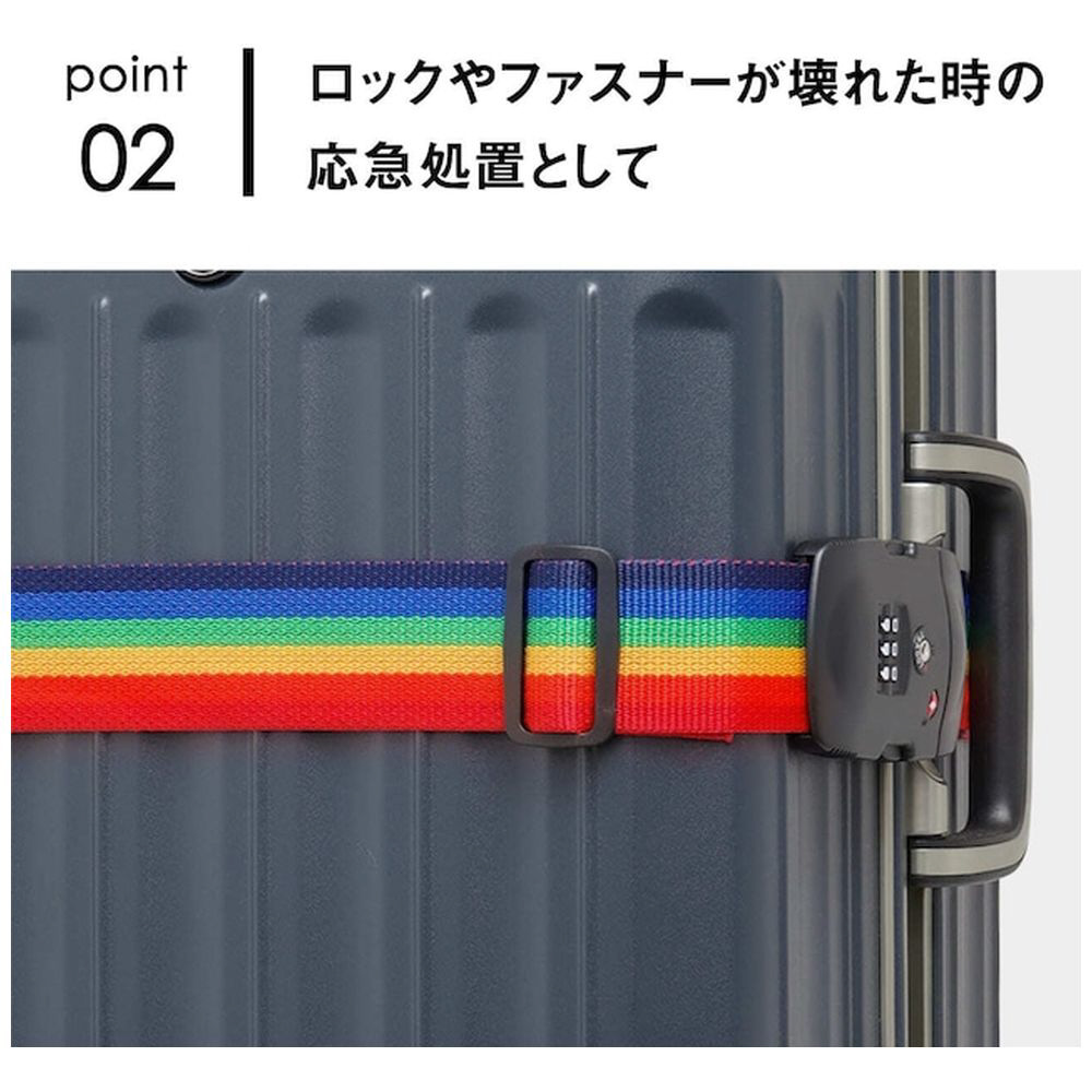 荷崩れ防止や盗難対策におすすめのスーツケースベルト。飛行機に乗る際には目印としても活躍します。