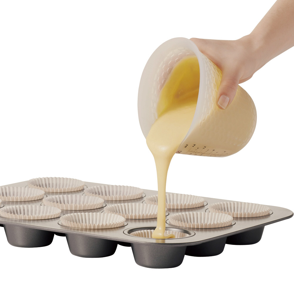 混ぜて、はかって、レンジにかけて、注ぐの一連の作業がこれひとつで完了します。