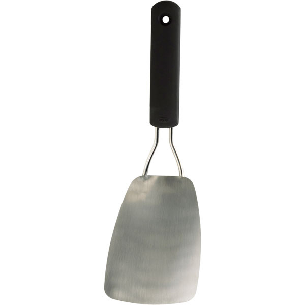薄くて弾力のある薄いステンレスのヘッドで、オムレツや白身魚など、柔らかい食材も崩さずに簡単にひっくり返すことができるのが、このソフトターナーです。