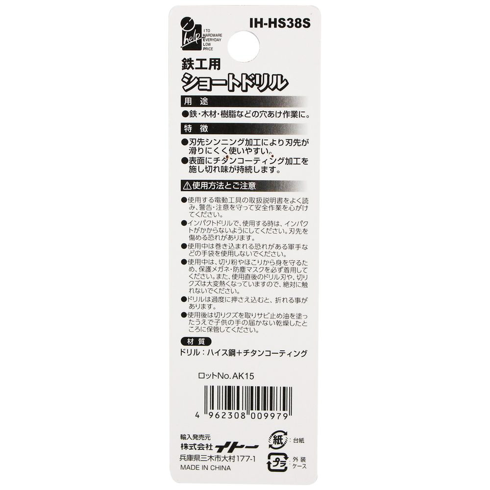イトー #077668 ショートドリル鉄工用 3.8mm