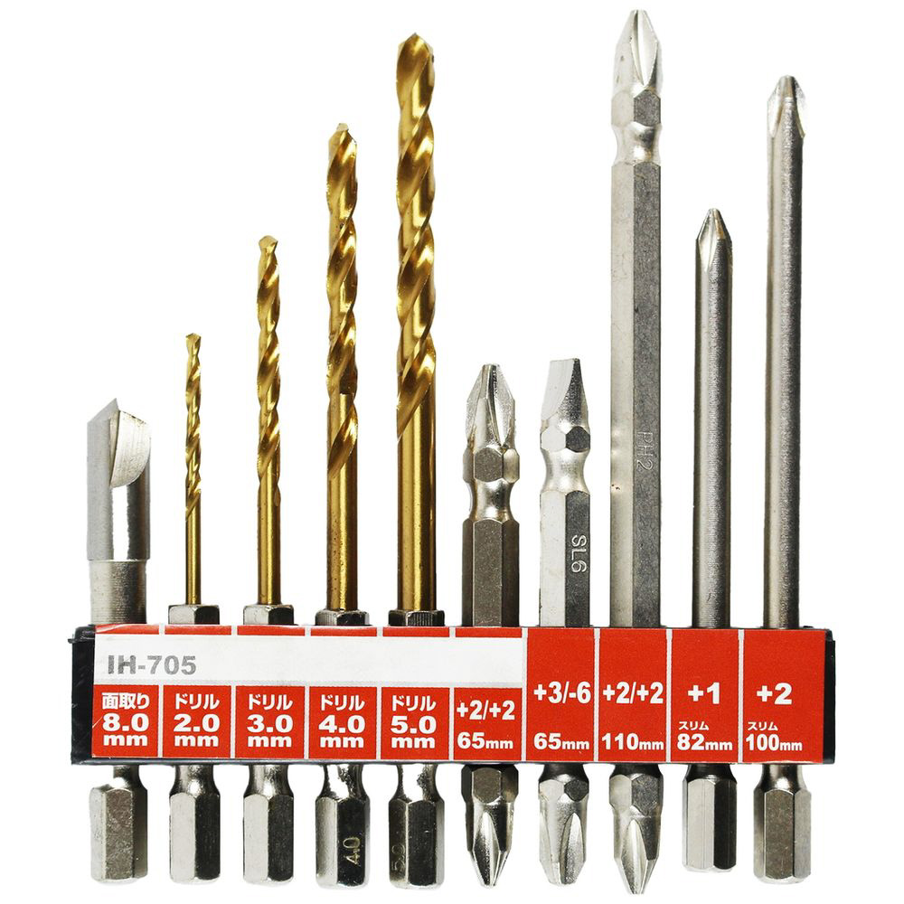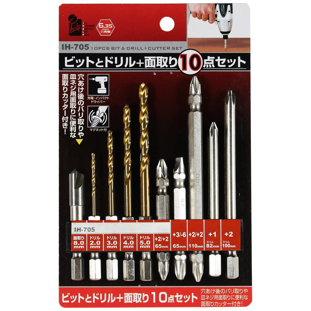 ●ジ締め、穴あけ、バリ取り、皿ねじ用面取りに対応したドリルパーツのセットです。●充電・インパクトドライバーで使用可能。