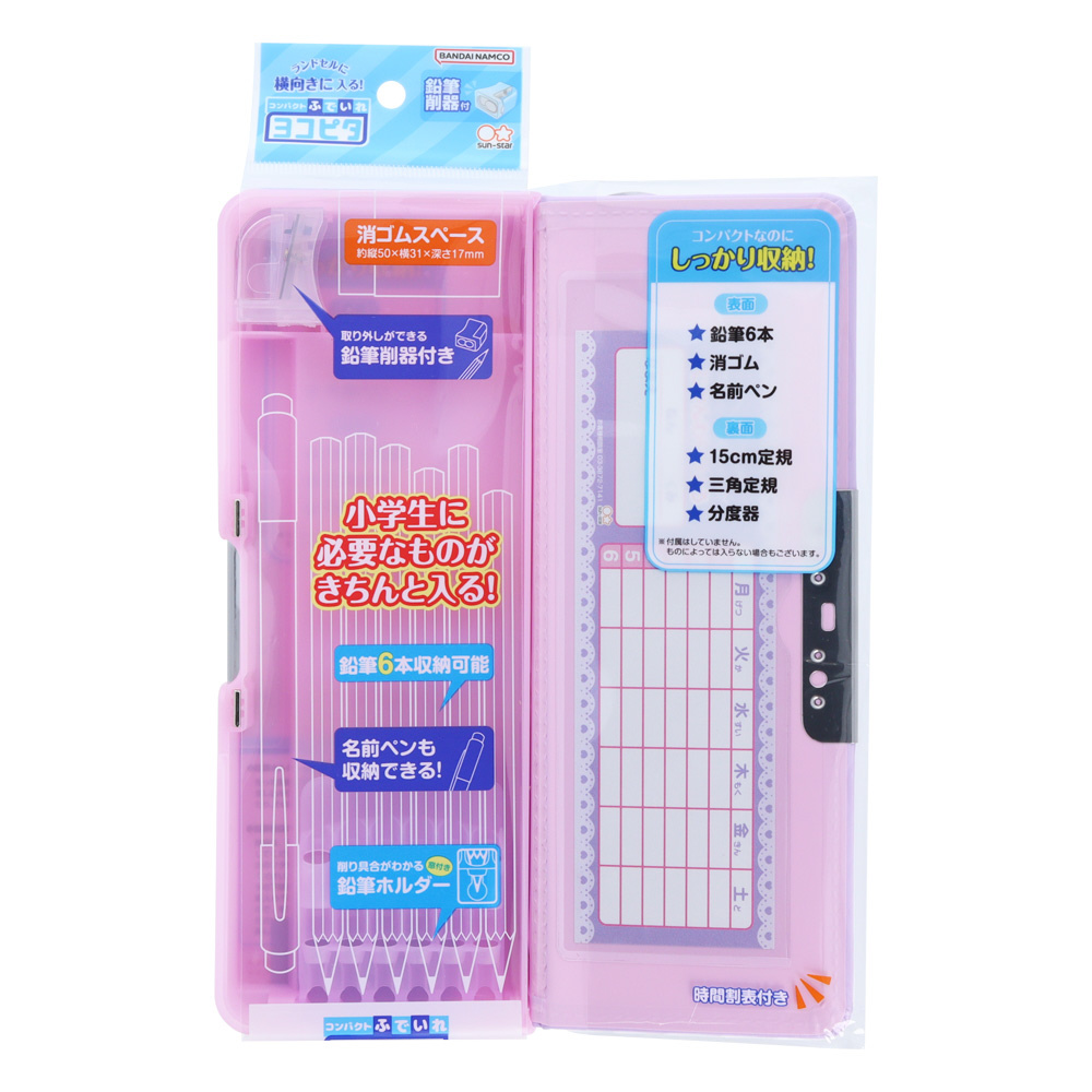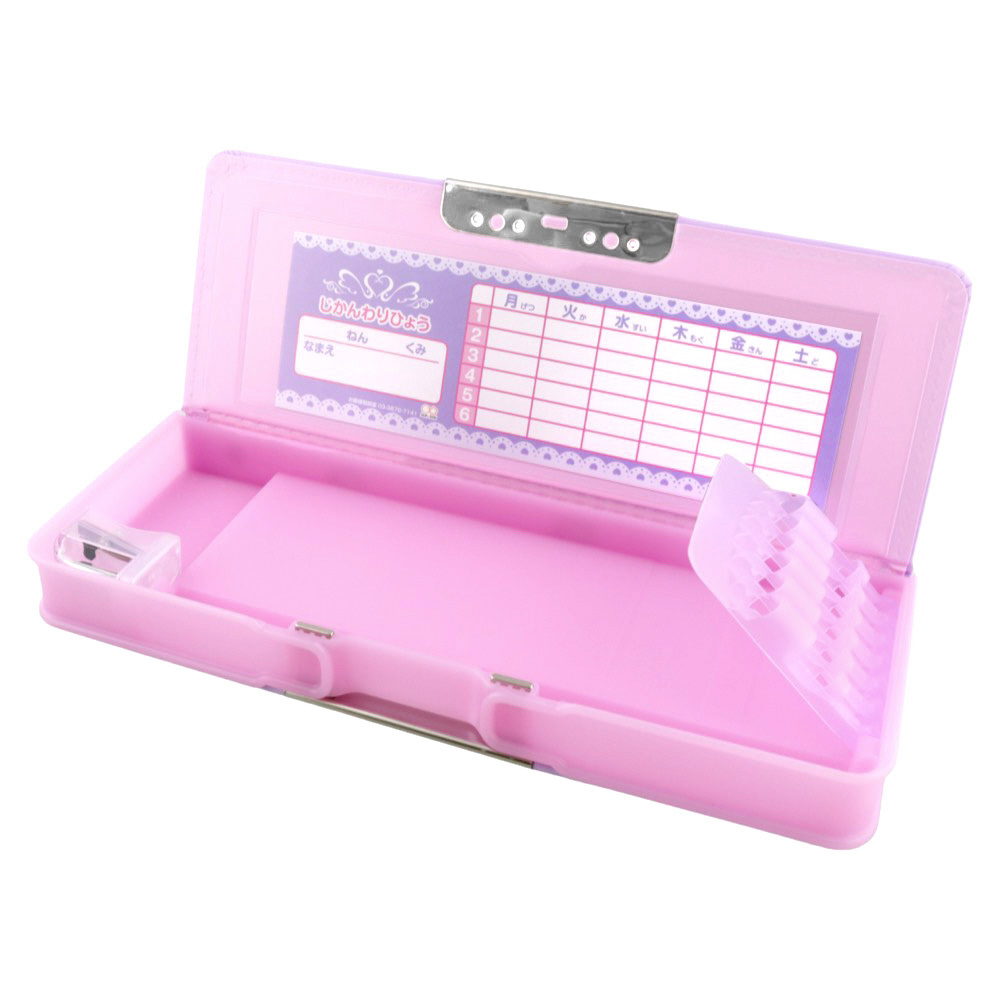 ココが小学生に選ばれる理由!(1)裏表がわかりやすいマグネットクリップ(2)消しゴムスペース(3)鉛筆削器付き(4)軽い力で開けられる指掛かり(5)時間割表付き(6)6本収納できるペンホルダー(7)名前ペン収納ケース(8)人気No.1のアピールマーク付きパッケージ(9)裏面は定規などにぴったり