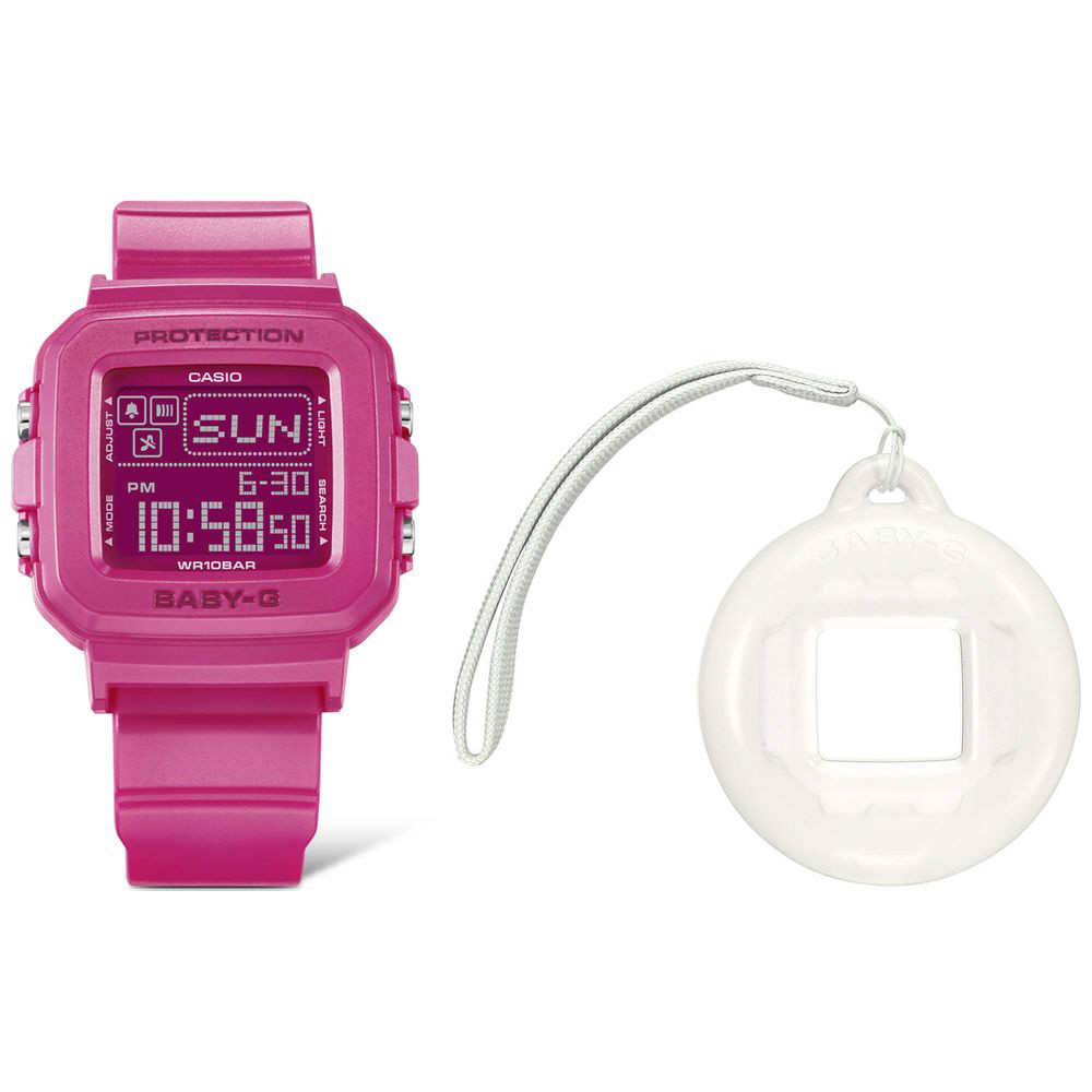 ■ BGD-10Kは、スクウェアベゼルのデジタルウオッチと専用の時計ホルダーがセットになったモデルで、工具不要で簡単にベゼルとバンドの取り外しが可能です。