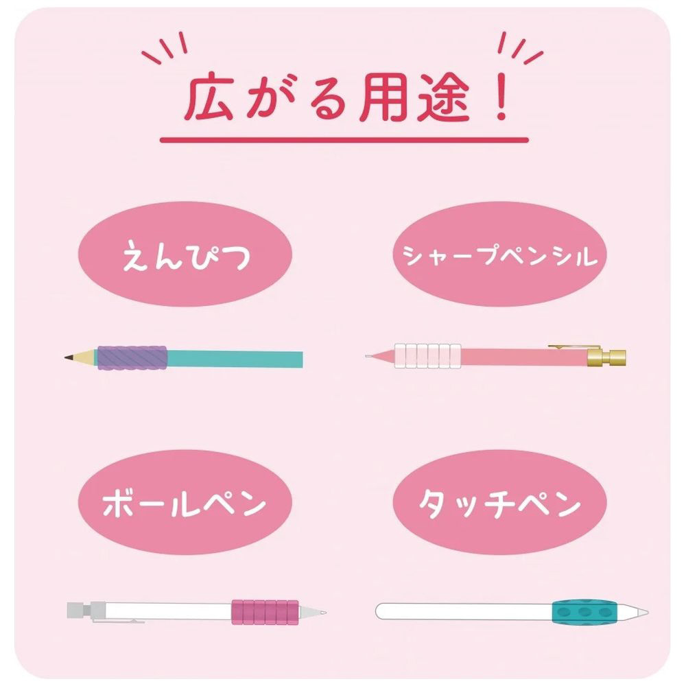 ・鉛筆、シャープペンシル、ボールペン、タッチペンなどにつけて疲れにくく持ちやすくなるグリップ!