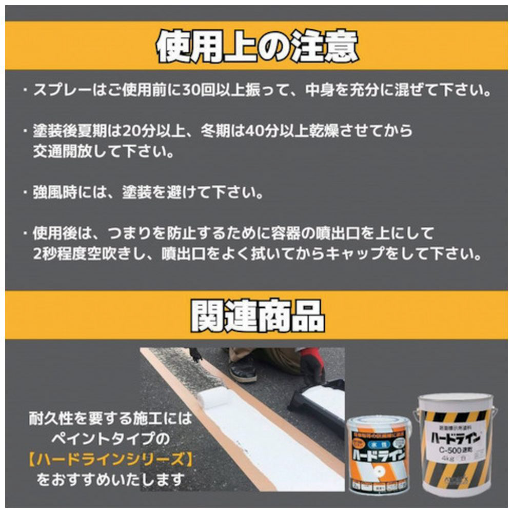 ・塗布面積: 6.5〜8[[M2]](ラインで65〜80m)、液性: 油性(ラッカー)