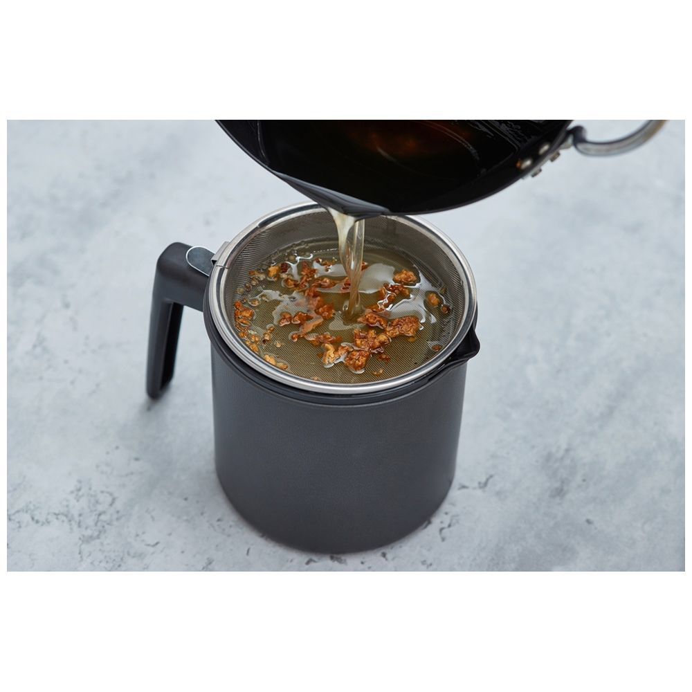 ■活性炭フィルターで使用後の油をろ過することで、汚れやニオイが軽減できるオイルポットです。