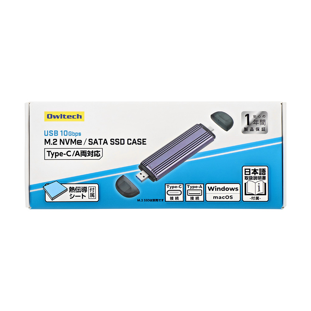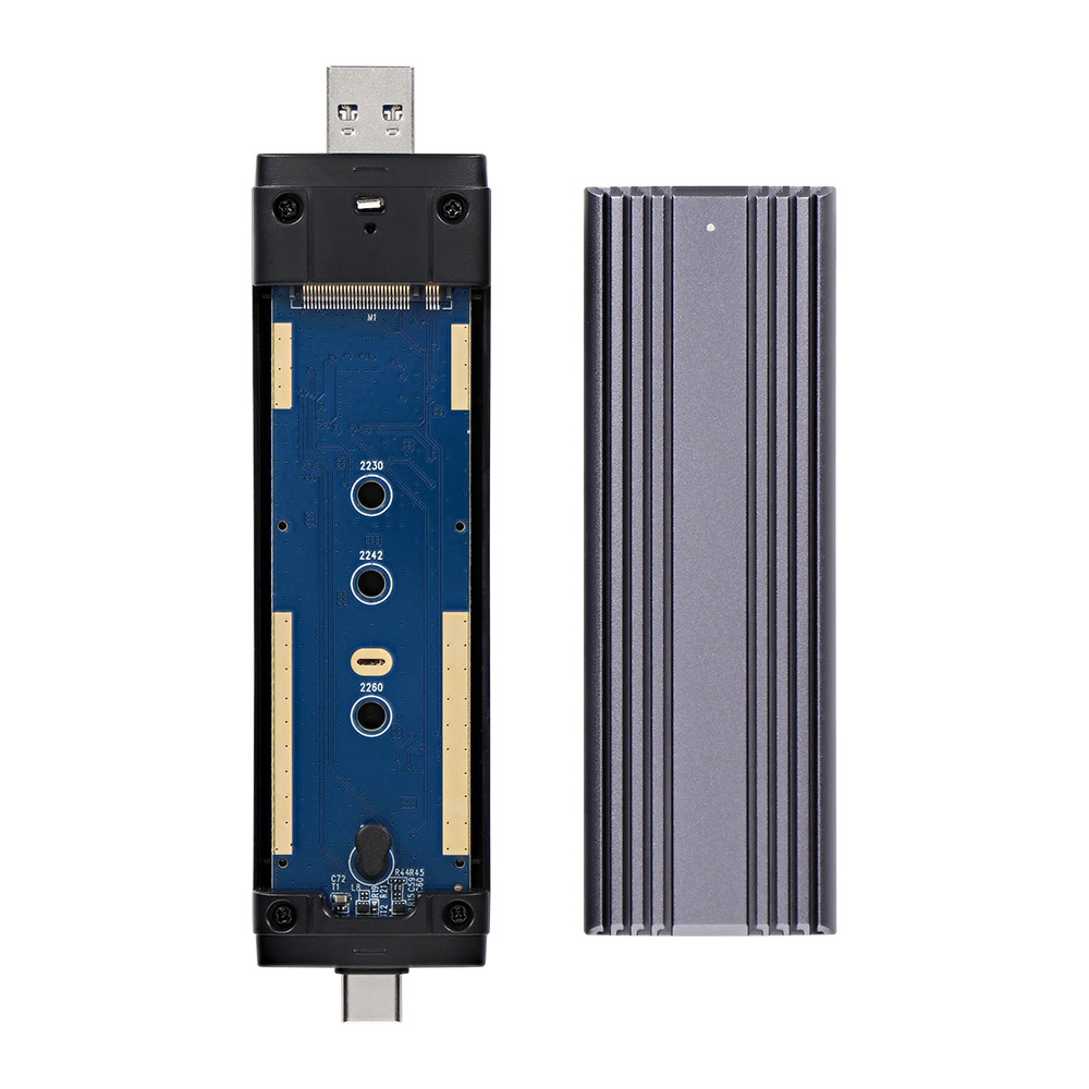 NVMe/SATA対応 最大転送速度10Gbps USB Type-A/Type-C コネクター一体型 M.2 SSD 外付けケース
