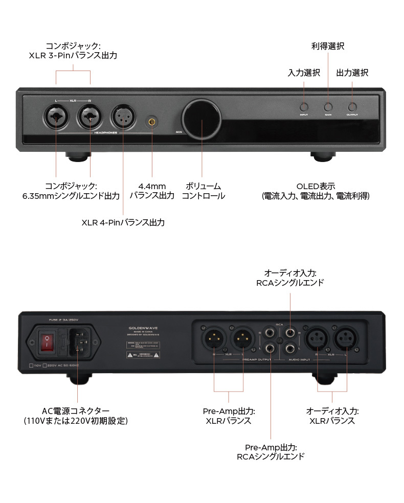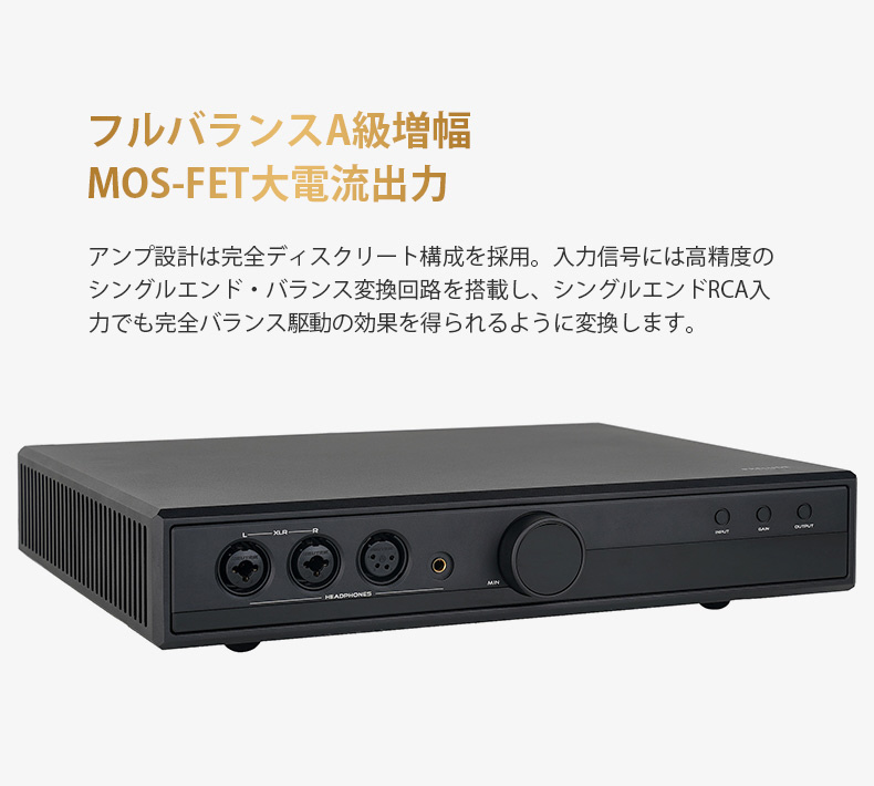 入力信号には高精度のシングルエンド・バランス変換回路を搭載し、シングルエンドRCA入力でも完全バランス駆動の効果を得られるように変換します。