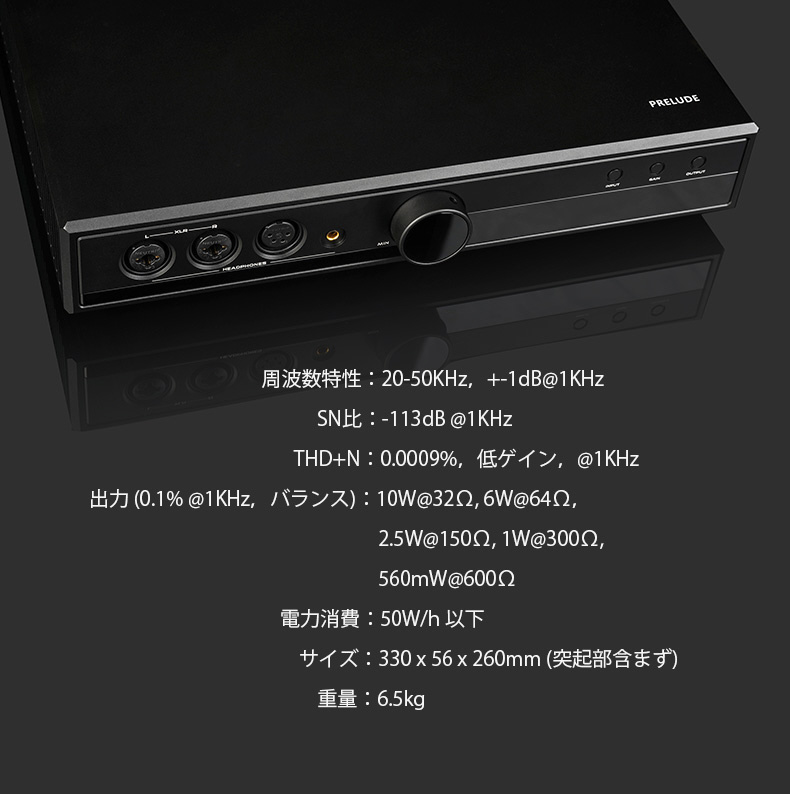 出力(0.1% @1KHz,バランス) : 10W@32Ω, 6W@64Ω,2.5W@150Ω,1W@300Ω,560mW@600Ω