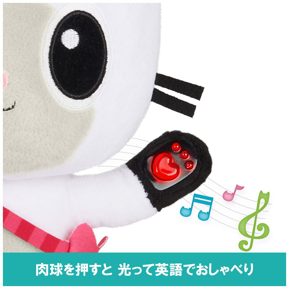 ピンクの左手の肉球を短く押すと、光っておしゃべりします。
