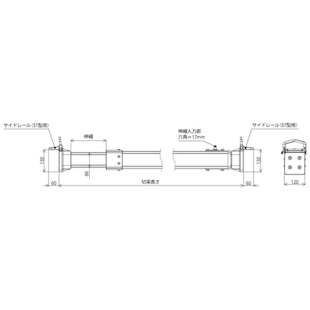 ラチェットレンチで伸縮する、長尺タイプの土留工事用ジャッキです。