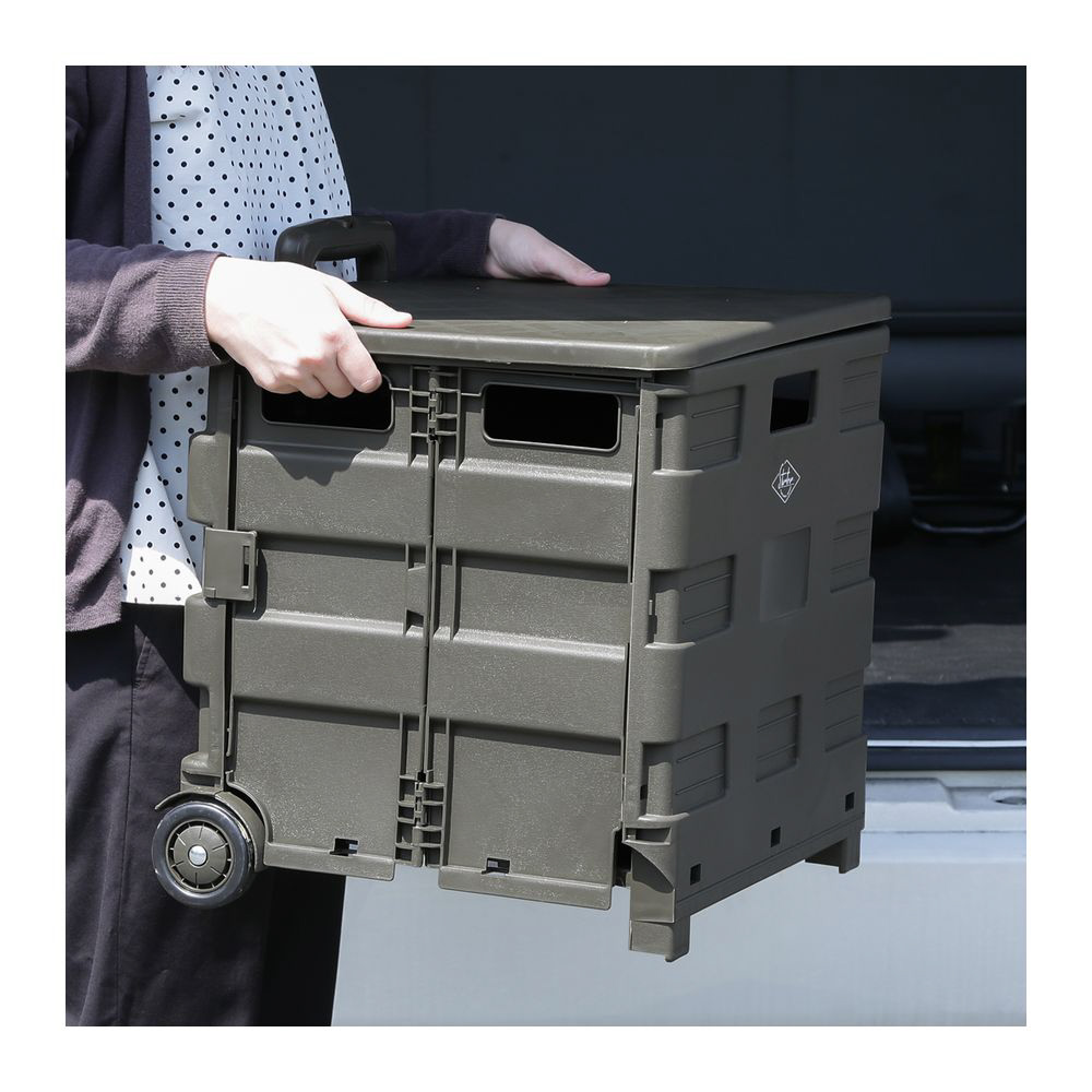 フォールディングキャリーカート L 蓋付き KH カーキ